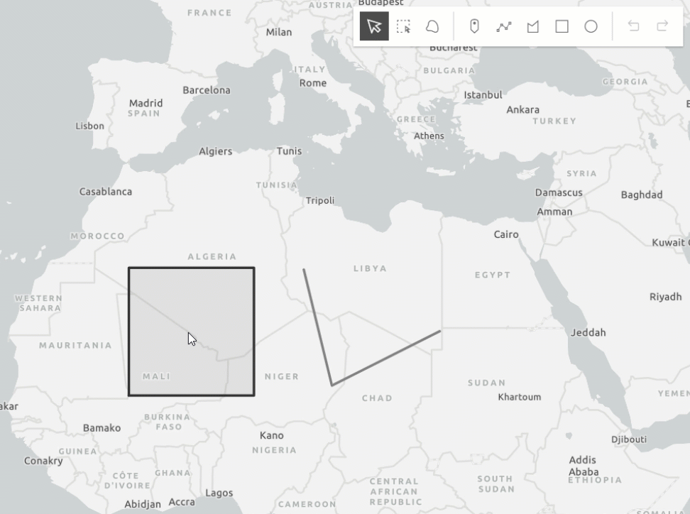 | Left-click+Drag | Creates a rectangle graphic with dimensions based on the bounding box between initial click and cursor location. Creates a circle graphic with radius based on the distance between initial click and cursor location. |