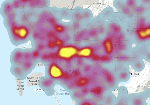 This sample demonstrates how to create a heatmap for large, dense point layers.